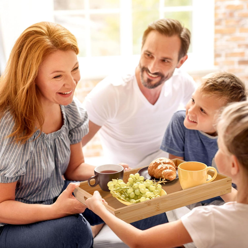 - 1. Our party tray is Crafted from quality and durable natural bamboo. Our serving trays with handles are stronger, sturdier and suitable for everyday use in the kitchen and beautifully decorate your coffee table.