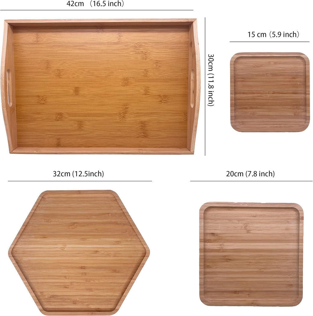 Conjunto de Bandejas de Bambu com Alças – 4 Peças para Servir, Petiscos e Jantar em Família