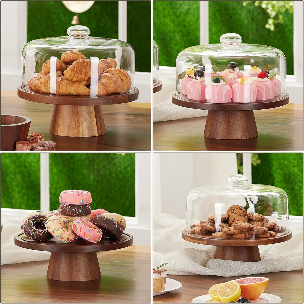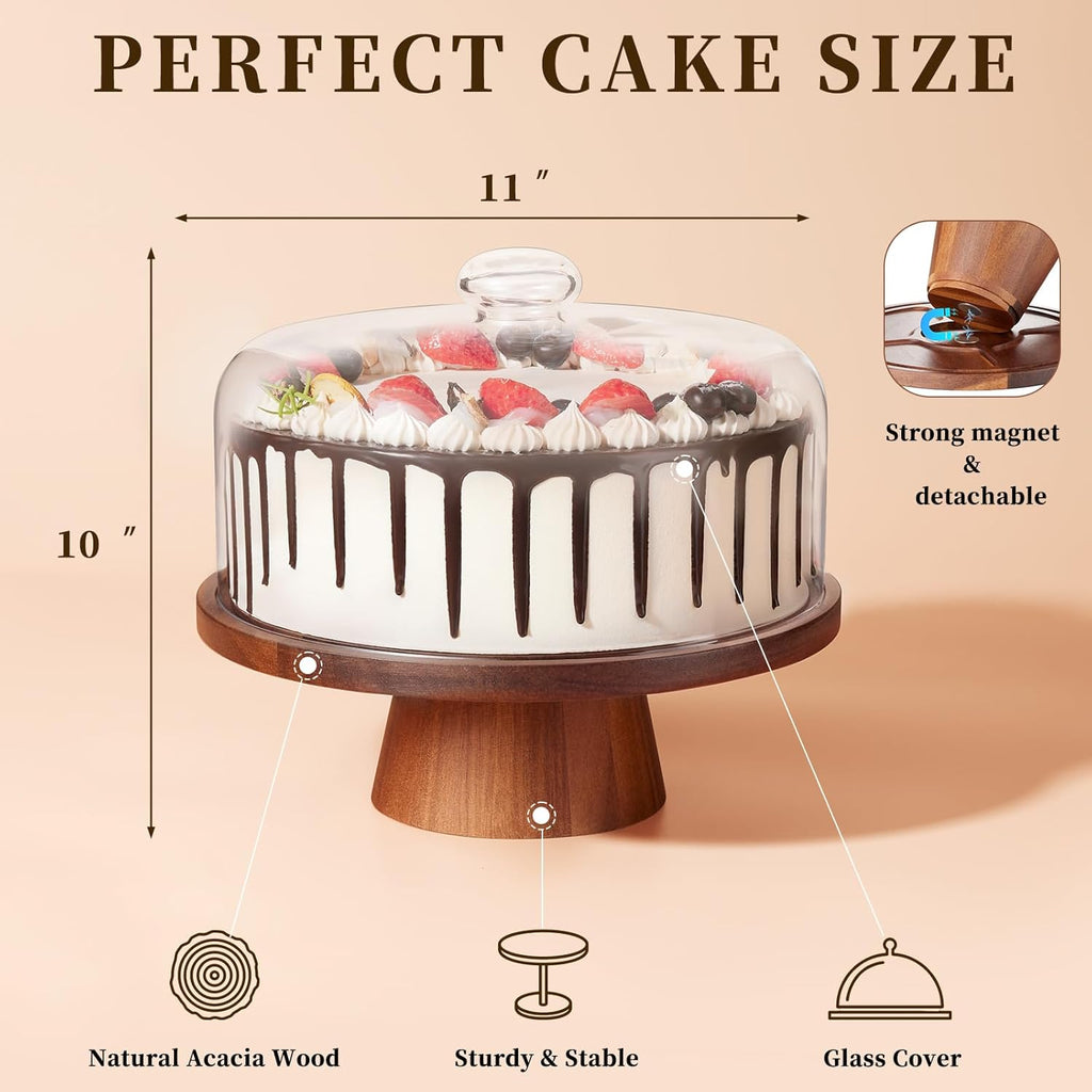 - 【Cúpula de vidro】 - O suporte de bolo de madeira de acácia VIVIRBIEN possui uma tampa de cúpula de vidro de alta transparência, oferecendo uma experiência de visualização aprimorada para mostrar suas obras-primas assadas com estilo. O design elegante e curvo da cúpula de vidro adiciona um contorno sofisticado a qualquer configuração de mesa, elevando sua apresentação de sobremesa para o próximo nível.