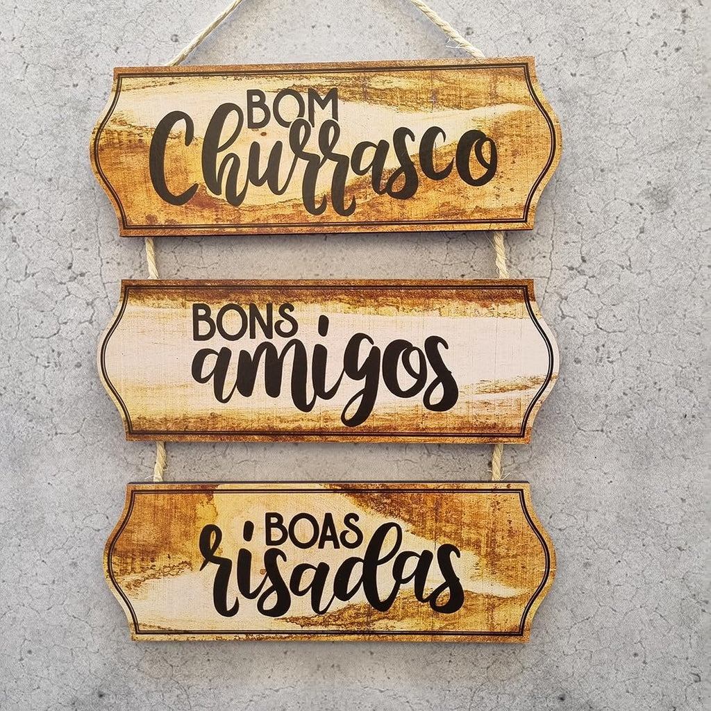 PLACA BOM CHURRASCO, BONS AMIGOS, BOAS RISADAS - 29x52cm