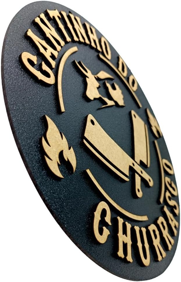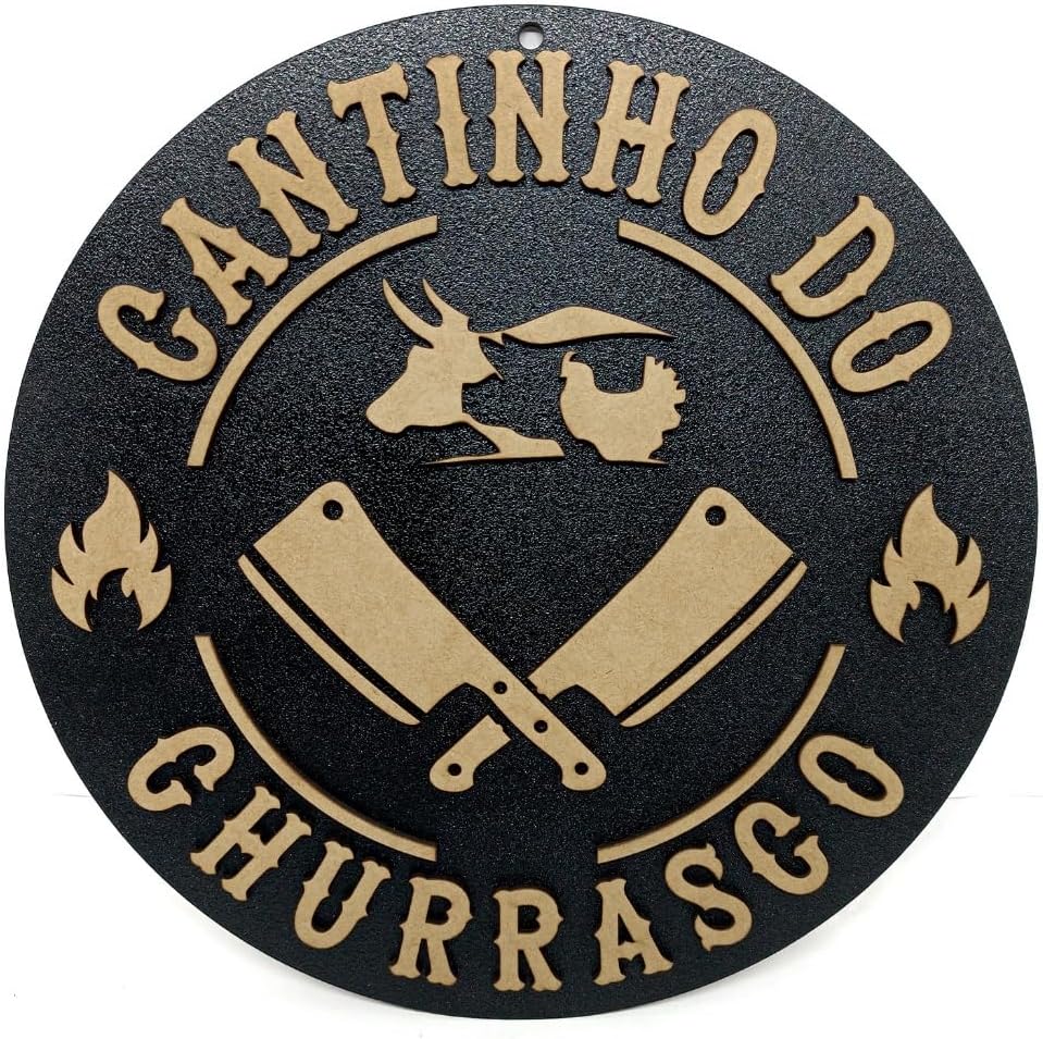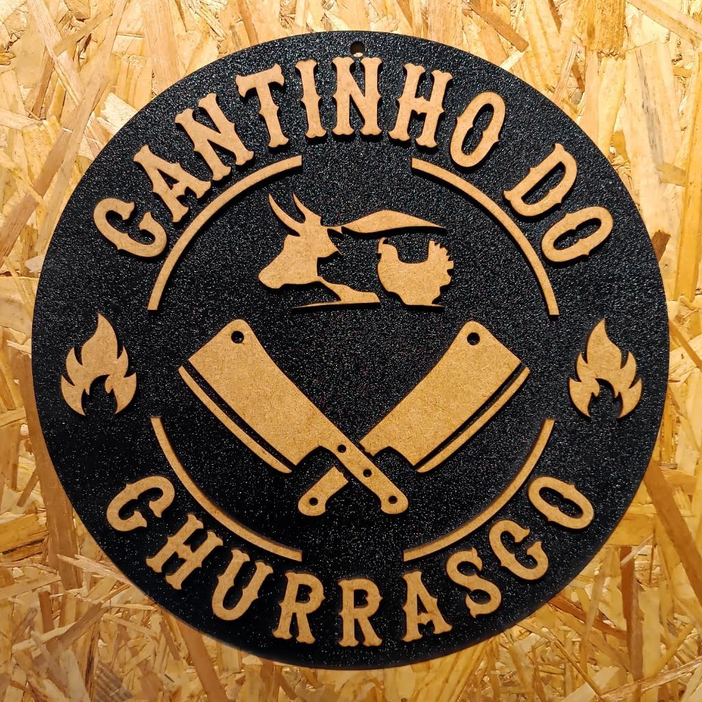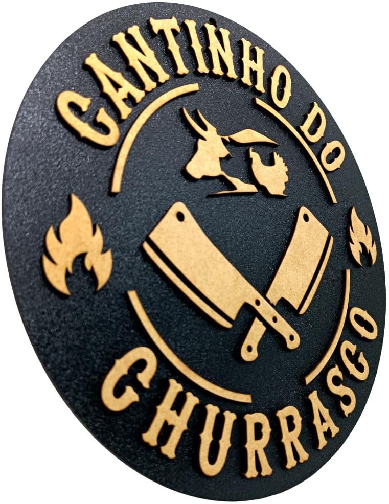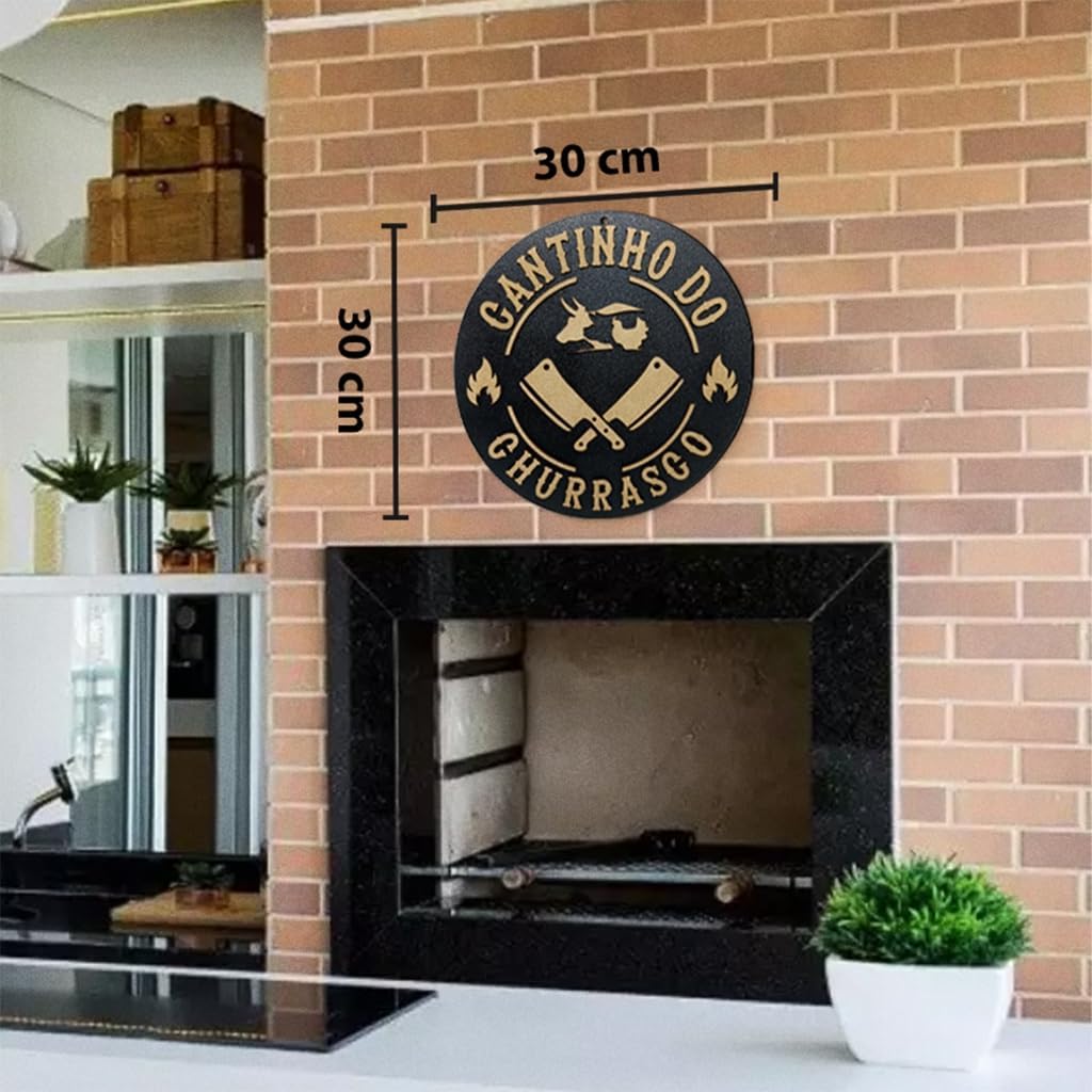 - Placa Decorativa "Cantinho do Churrasco": Design redondo com frase e ilustrações em relevo, perfeita para valorizar o ambiente da churrasqueira ou área gourmet.