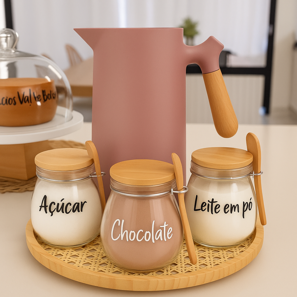 Se você ama café, decoração e praticidade, este kit foi feito especialmente para você. Ele deixa tudo à mão, tudo organizado e tudo LINDO.