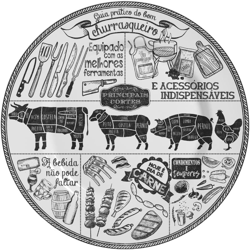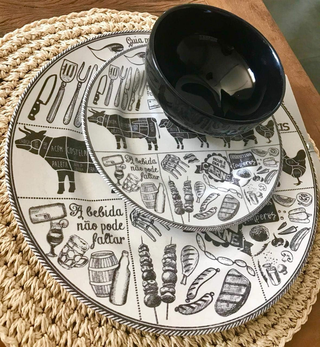 Alleanza Churrasco 8099 Conjunto de 6 Pratos de Sobremesa, Padrão, Branco/Preto