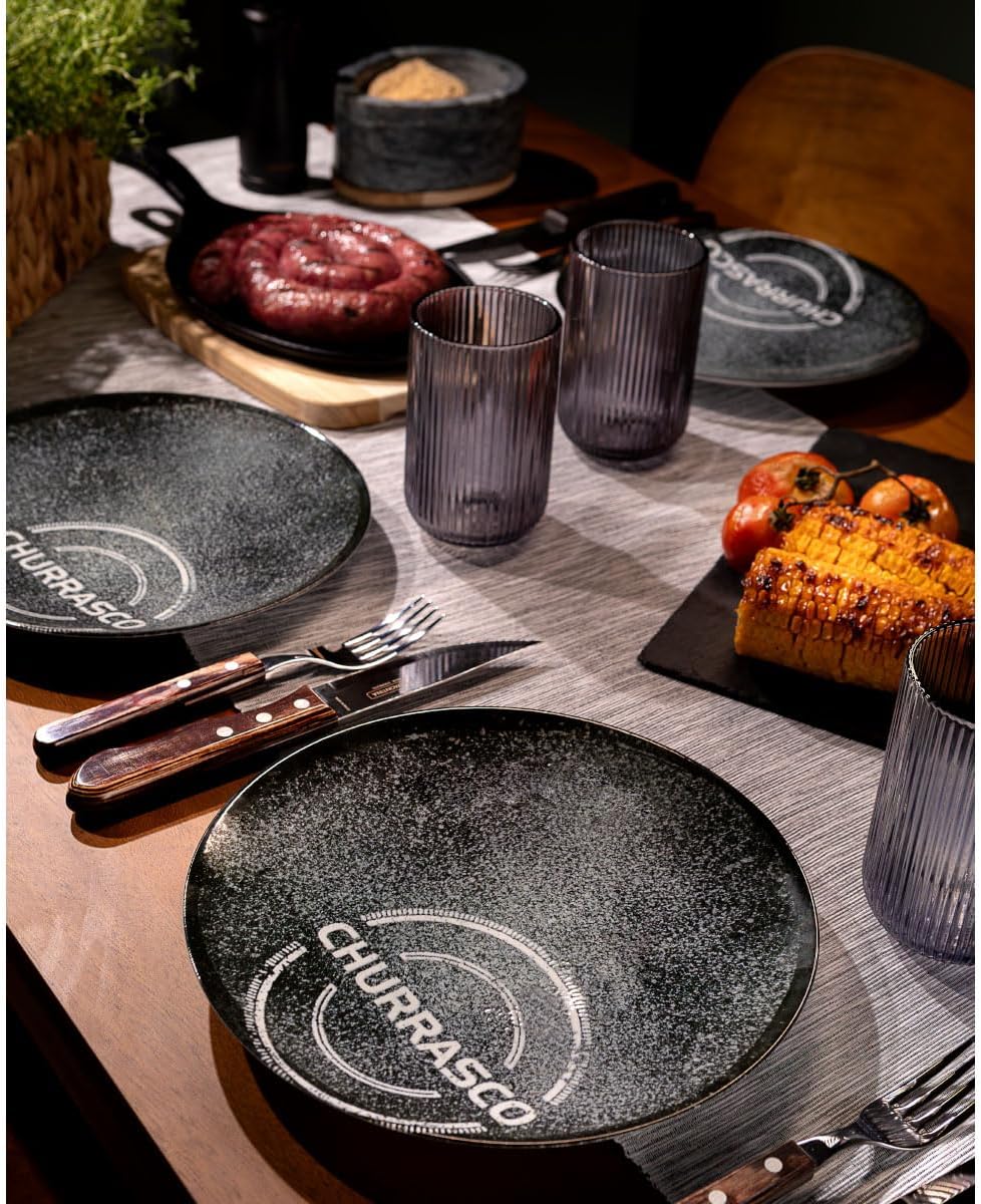 Prato Raso Tramontina Churrasco Carbon em Porcelana Decorada 25 cm