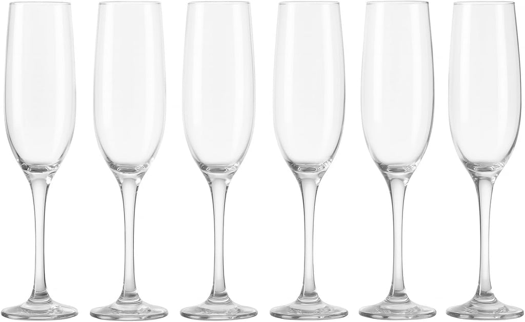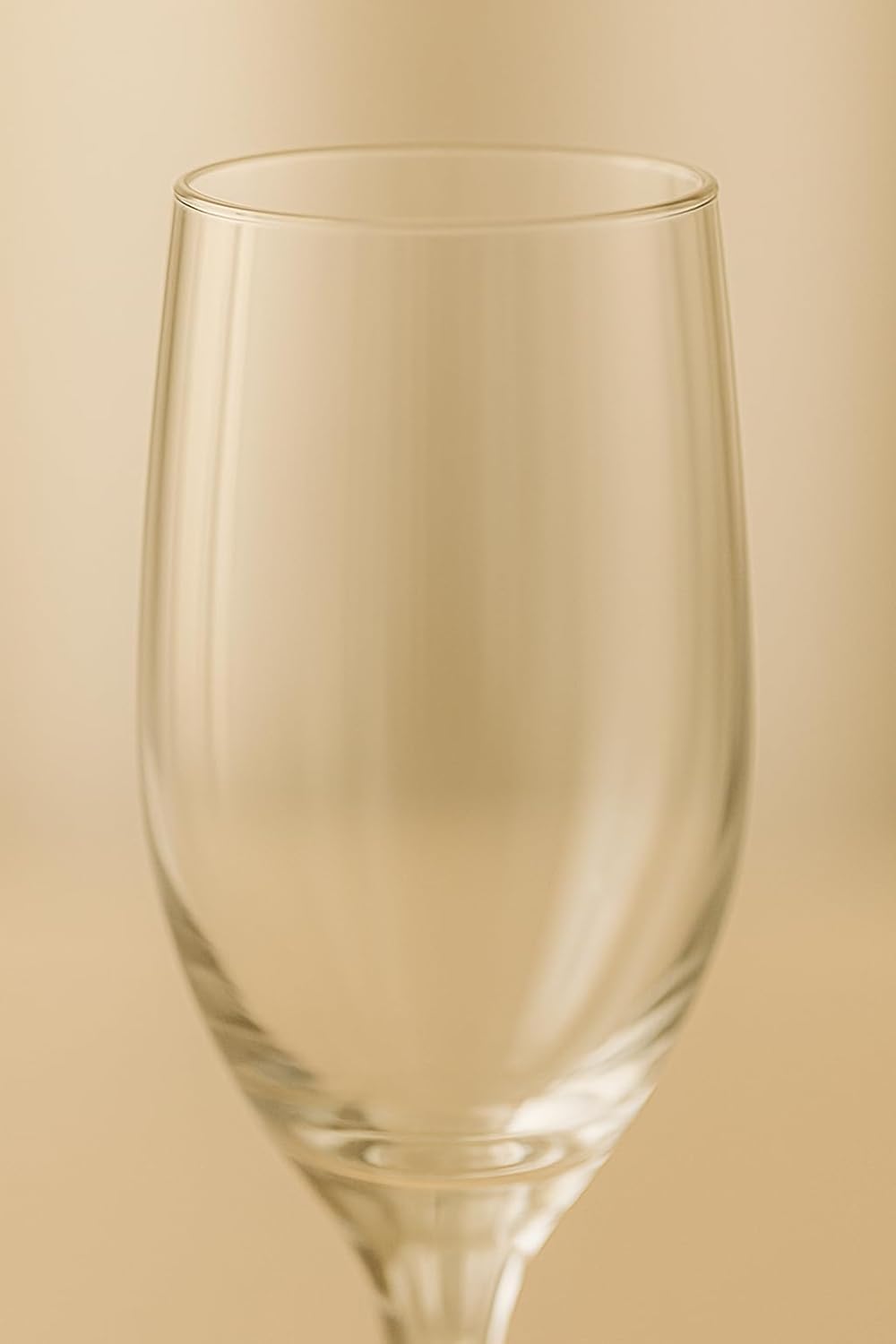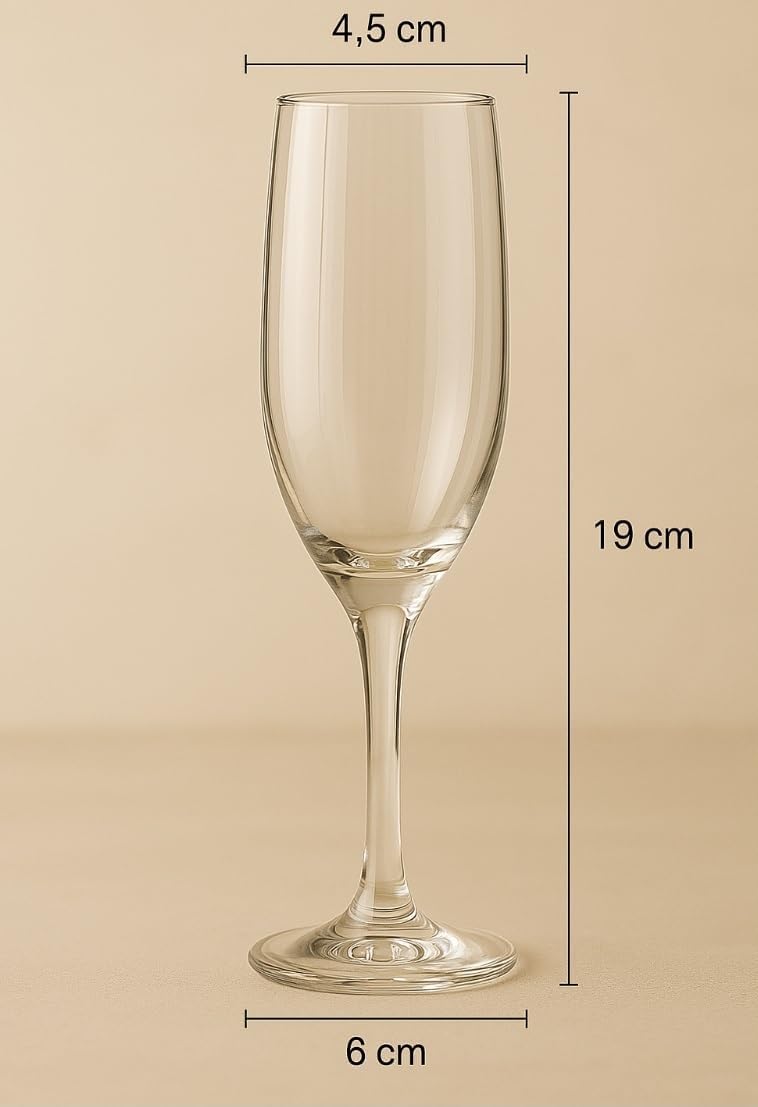 Fabricadas em vidro resistente de alta transparência, as taças possuem formato cilíndrico que preserva o perlage e realça o sabor da bebida, mantendo o frescor por mais tempo. Cada peça é cuidadosamente produzida para oferecer equilíbrio perfeito entre leveza e durabilidade, garantindo um toque refinado à sua mesa.