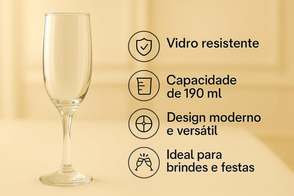 Capacidade Ideal – Cada taça comporta 190 ml, medida clássica para champanhes, espumantes e drinks festivos.
