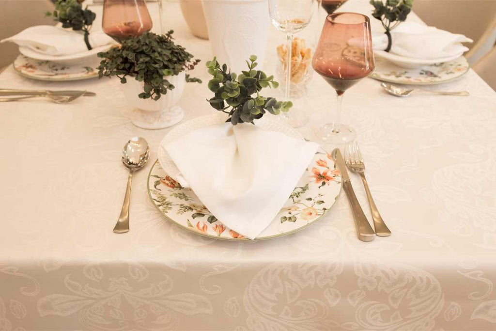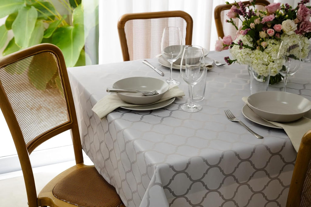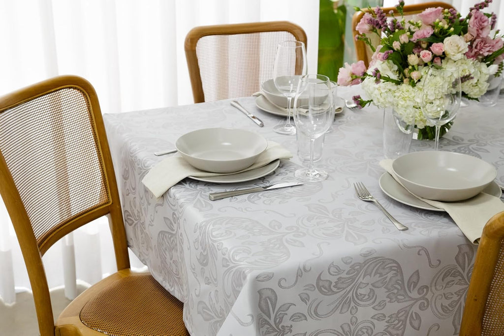 A toalha de mesa em Jacquard impermeável da GMRM Decor une a mais alta tecnologia em tecidos com o charme e elegância das tendências em decoração.