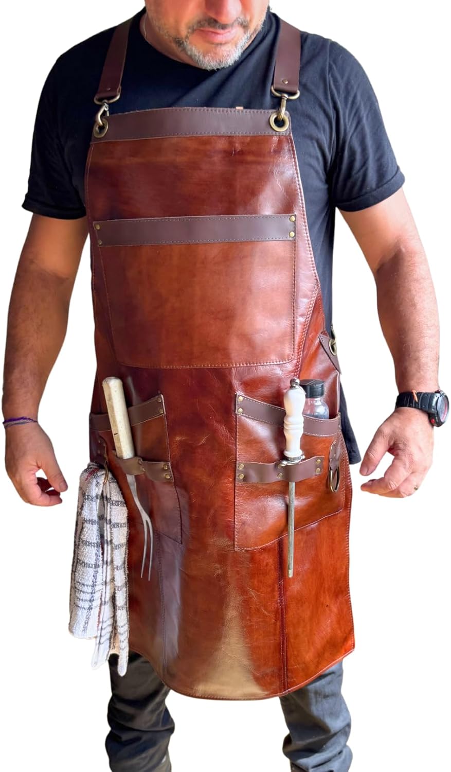 O avental com divisórias espaçosas e feito de couro bovino legítimo é uma peça de alta qualidade e durabilidade. Além de ser elegante, ele é perfeito para quem busca praticidade e organização na hora do churrasco e também na hora de cozinhar ou realizar atividades artesanais. Suas divisórias espaçosas permitem que você tenha fácil acesso a todos os seus utensílios, mantendo tudo ao alcance das mãos. O couro bovino legítimo confere um toque de sofisticação ao avental, tornando-o não apenas funcional, mas também um acessório de estilo. Seja na churrasqueira, na cozinha, no ateliê ou em qualquer outra atividade que exija proteção e praticidade, este avental será o seu aliado perfeito. Comp.: 85 cm Largura: 57 cm Tamanho ajustável Características: Material: Couro Bovino Legítimo Cor: Marrom Peso: 400g Divisórias: Conta com 3 bolsos amplos, suporte para utensílios e porta guardanapo. Fivelas em Metal: Sim Ajuste de Tamanho: Alças ajustáveis disponíveis em duas opções: em formato X e com padrão. Costura: Reforçada Resistente à Água: Sim Fácil de Limpar: Sim Benefícios: Durabilidade: O couro bovino legítimo utilizado na confecção do avental garante uma longa vida útil, resistindo bem ao desgaste e às exigências do uso diário. Estilo e Sofisticação: O design elegante, combinado com o material de alta qualidade, faz deste avental uma peça que se destaca visualmente, seja em um ambiente profissional ou em uma reunião casual com amigos e família. Praticidade: Com suas divisórias espaçosas, você poderá organizar seus utensílios de forma eficiente, economizando tempo e esforço durante suas atividades. Conforto: O ajuste de tamanho permite que o avental se adapte perfeitamente ao seu corpo, proporcionando conforto durante longos períodos de uso. Versatilidade: Ideal para churrasqueiros, chefs, barbeiros, e artesãos, este avental é um acessório versátil que atende às necessidades de diferentes profissionais. Proteção: O avental oferece uma camada extra de proteção contra calor, respingos e sujeira, mantendo suas roupas limpas e seguras. Instruções de Cuidado: Limpar com um pano úmido e sabão neutro. Evitar exposição prolongada ao sol para preservar a cor do couro. Aplicar condicionador de couro periodicamente para manter a flexibilidade e o brilho do material. Guardar em local seco e arejado, longe de fontes de calor excessivo. Este avental é a escolha ideal para quem não abre mão de qualidade, estilo e funcionalidade em suas atividades diárias. Adquira o seu e aproveite todas as vantagens que ele tem a oferecer!