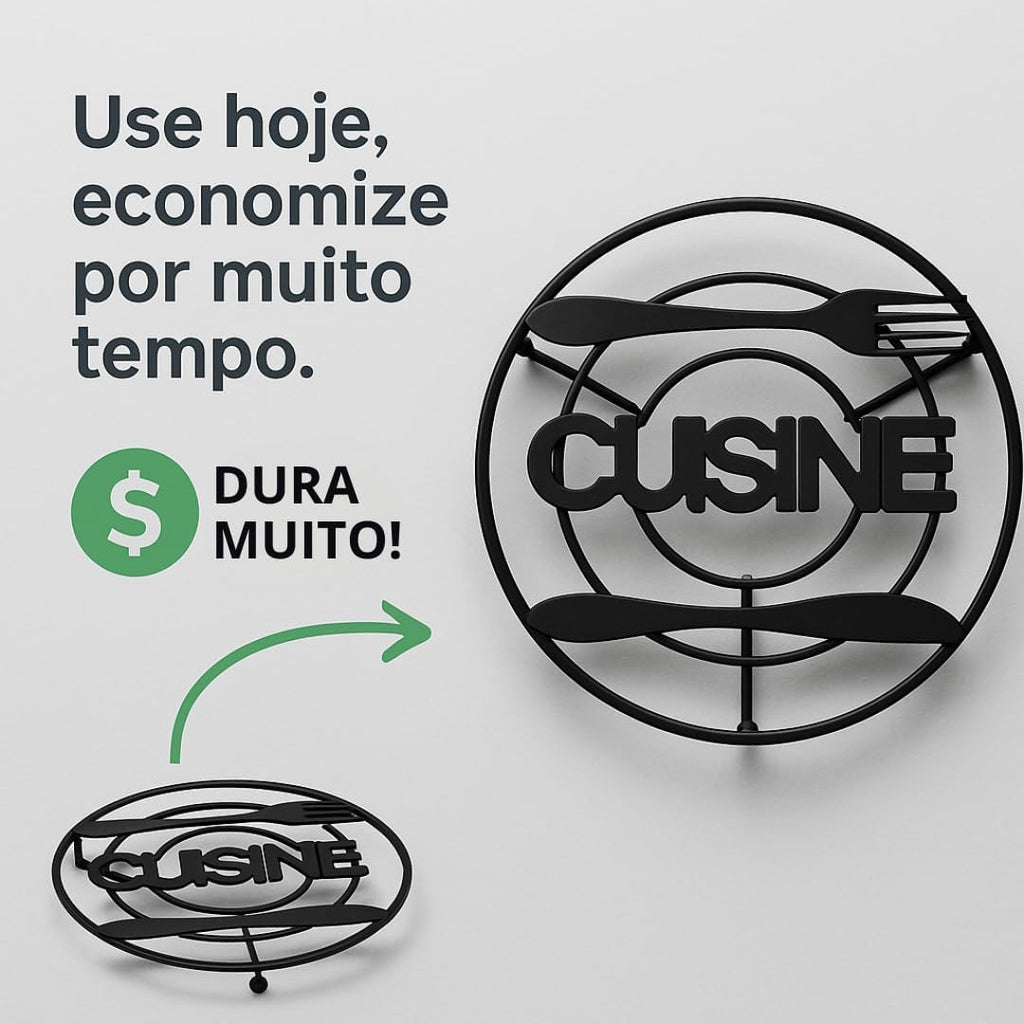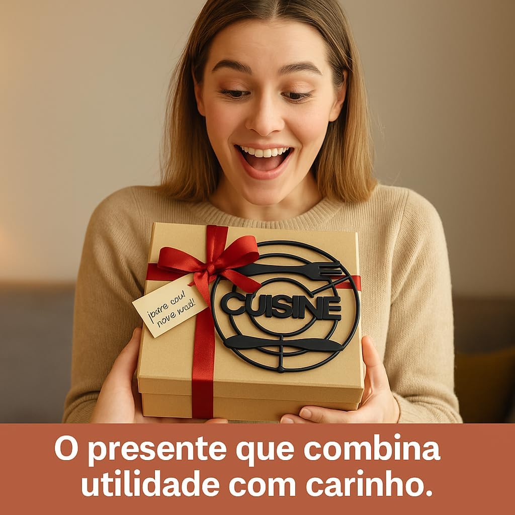 - ✨ Design moderno preto fosco Cuisine, que combina com estilos diversos de cozinha e transforma seu apoio em elemento de mesa elegante;