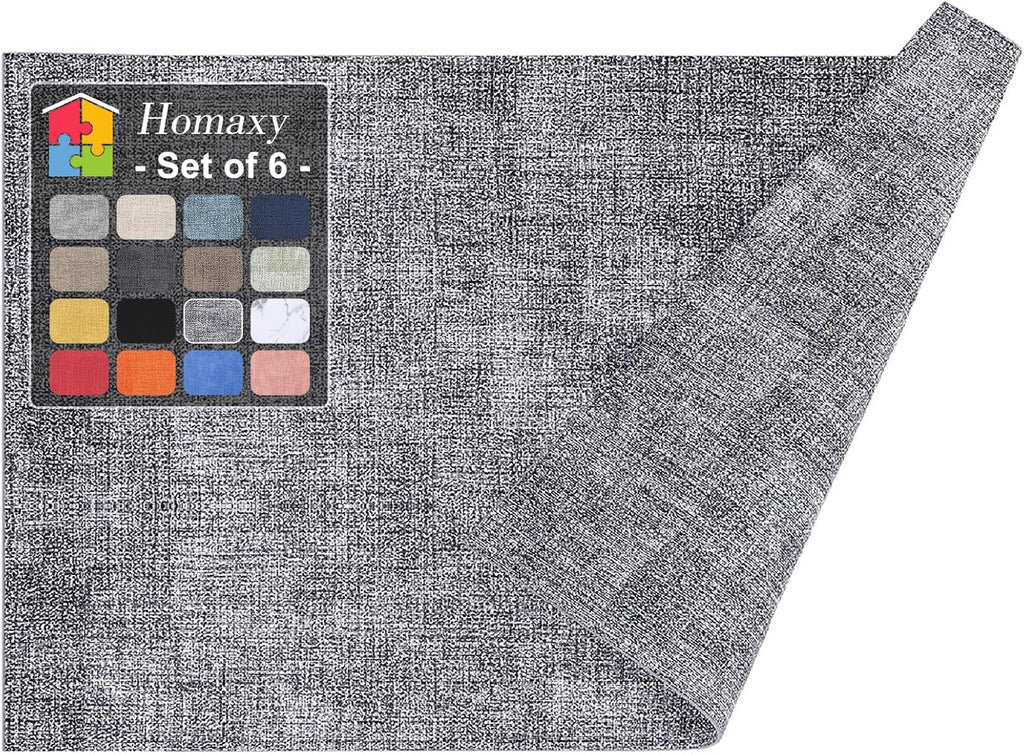 Homaxy Faux Leather Heat Resistant Placemats for Dining Table Set of 6, Waterproof Wipeable Washable PU Table Mats, Easy to Clean Anti-Slip Place Mats, 11.8" x 17", Light Grey