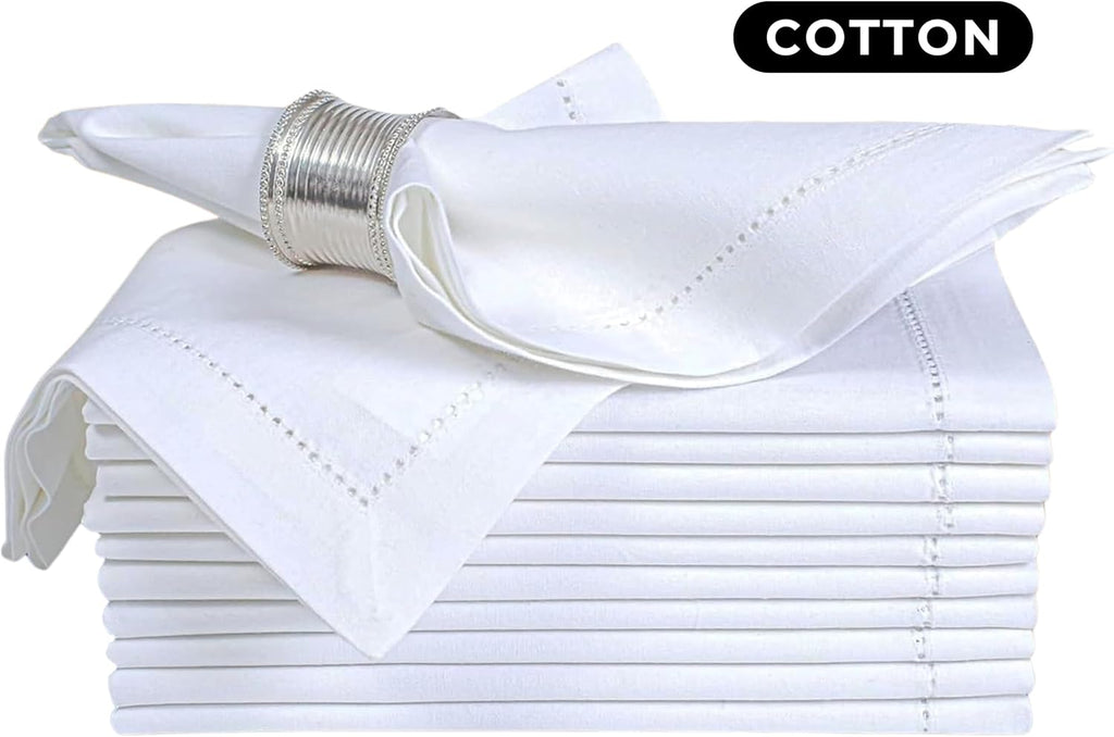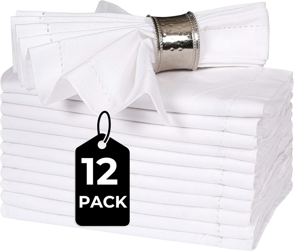 Homidate Cotton Cloth Dinner Napkins Set of 12 – 18x18 White with Hemstitched Mitered Corners – Machine Washable Fabric Napkins for Weddings, Dinner Parties & Table Decorations