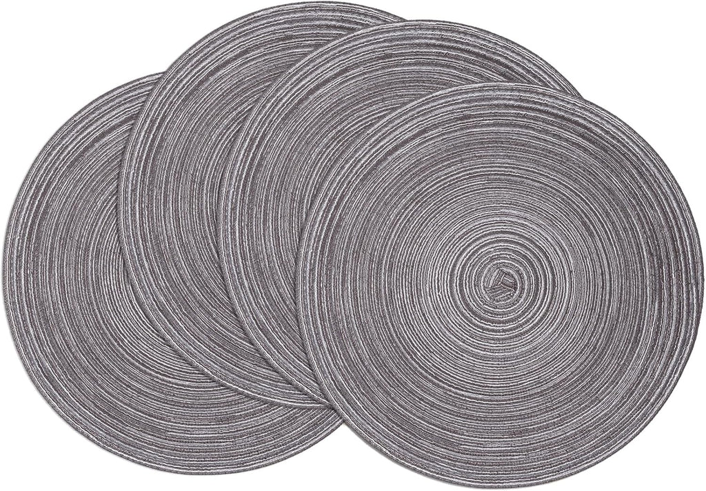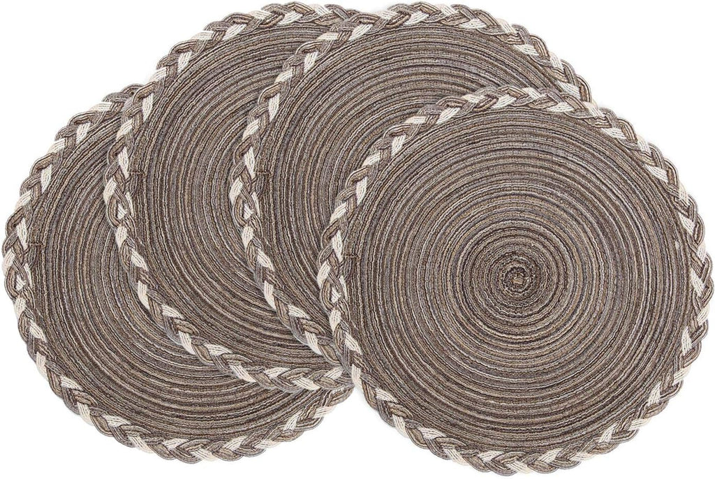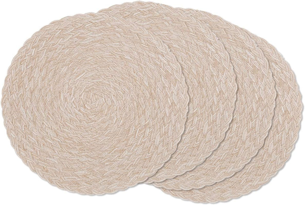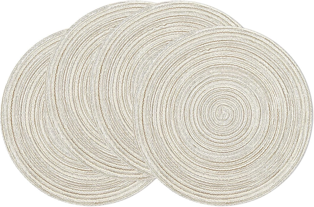 SHACOS Round Braided Placemats Set of 4 Round Table Mats for Dining Tables 15 inch Washable Kitchen Table Place Mats Indoor (Beige, 4)