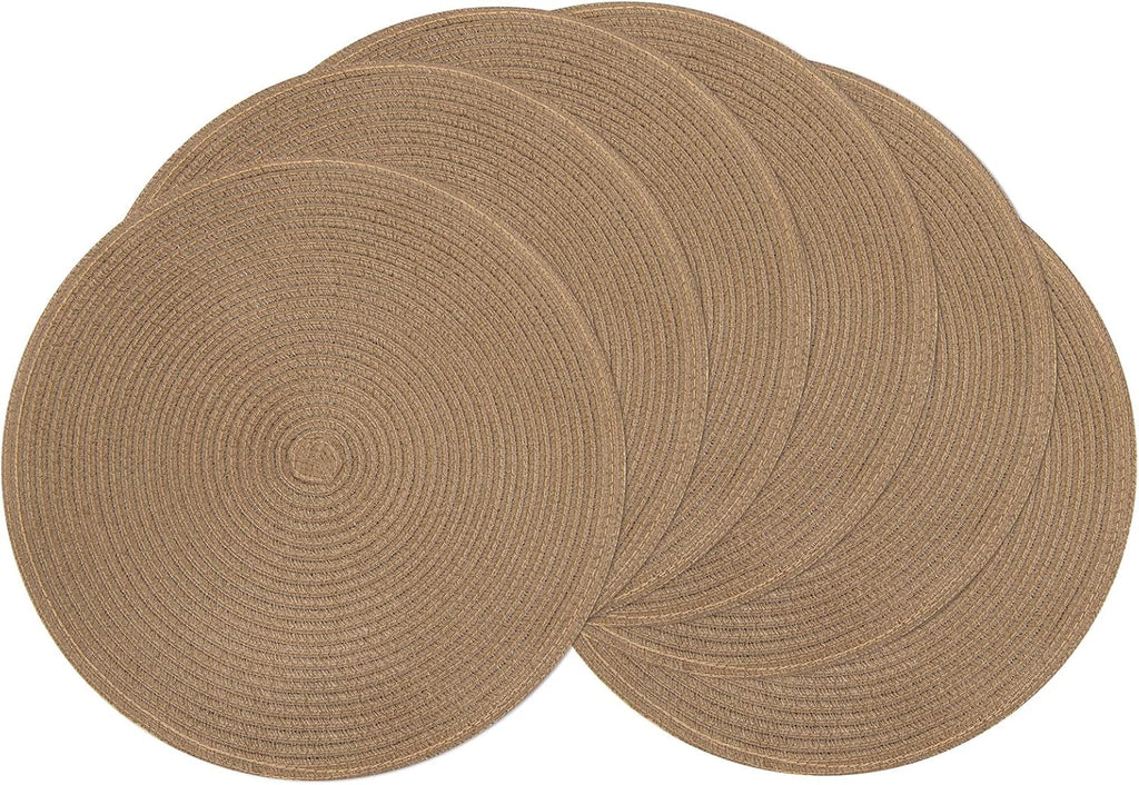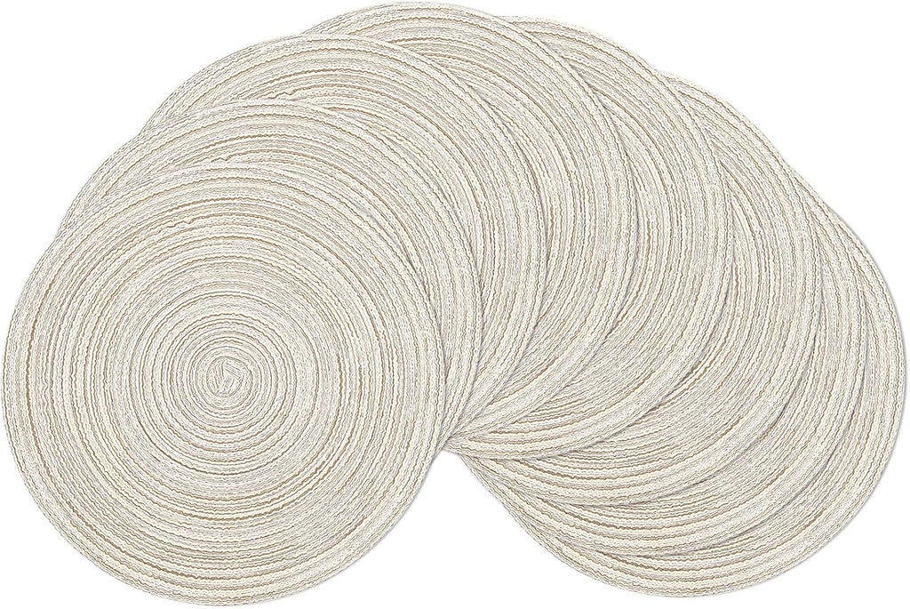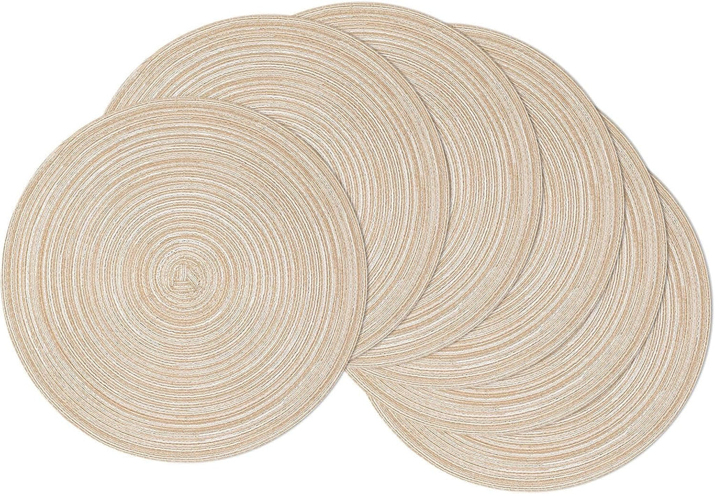 SHACOS 15 inch Round Braided Placemats for Dining Tables 15 inch Spiral Circle Place Mats for Kitchen Table Decor, Beige