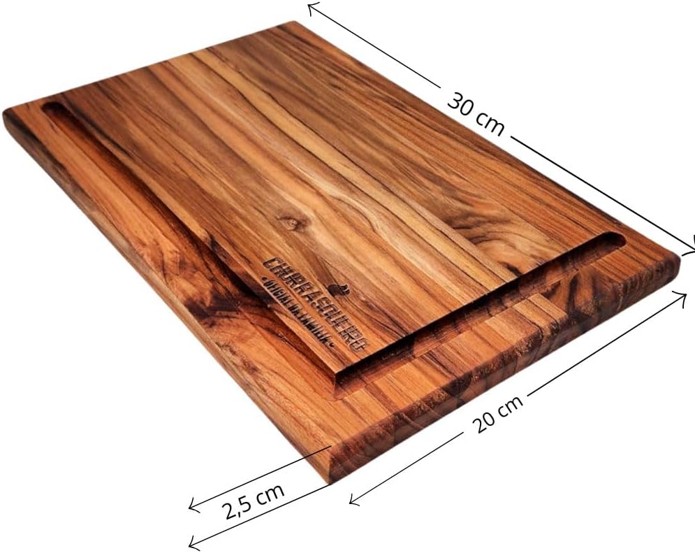 A madeira de Teca é duradoura e resistente à umidade, o que torna a tábua mais durável e fácil de cuidar.
